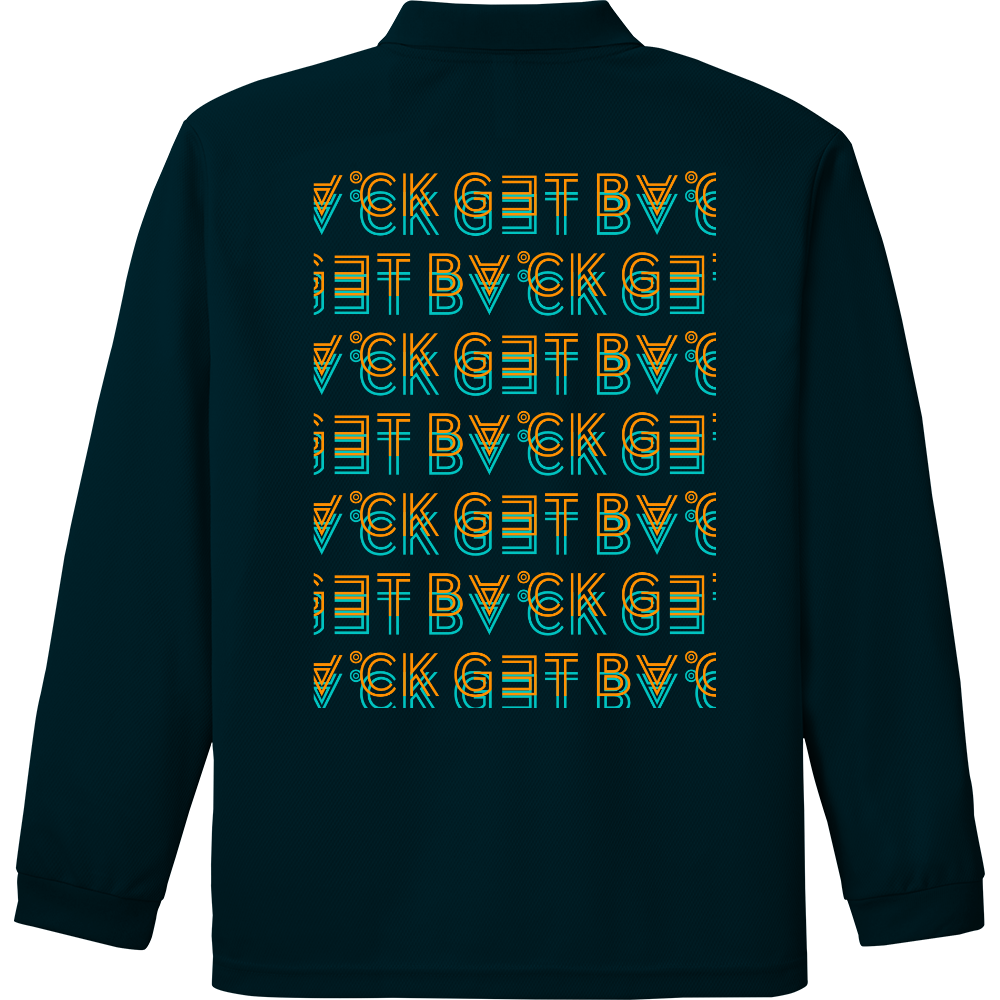 背面デザインが派手なGET BACKの長袖ポロシャツ。黒でシックに。 (サイズ:身巾/身丈/肩巾/袖丈)(cm) M:51/71/44/61 L:54/75/46/62
