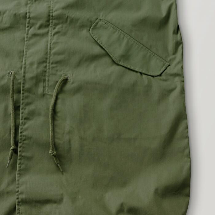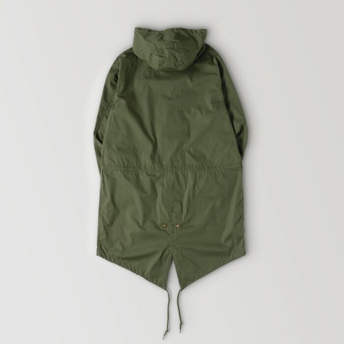 適度にゆとりがあるシルエットで、裏地のない一重仕立ての軽さが特徴のモッズコートです。