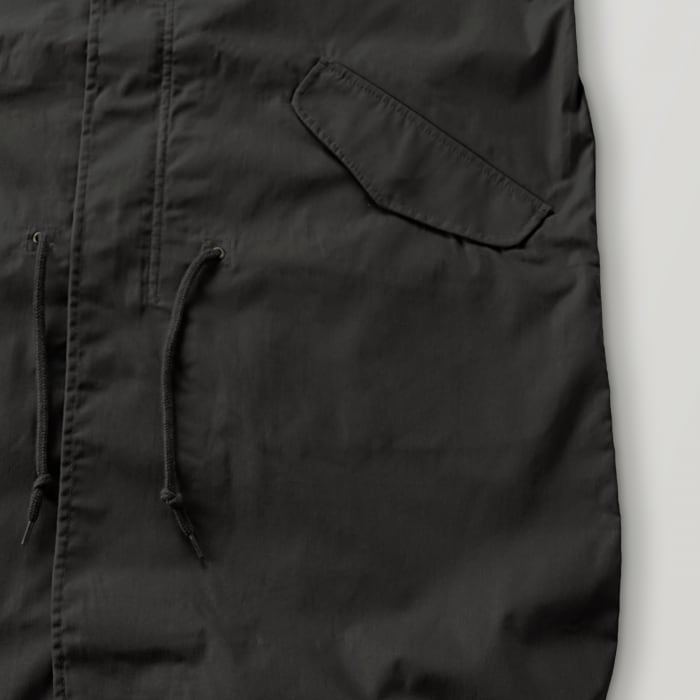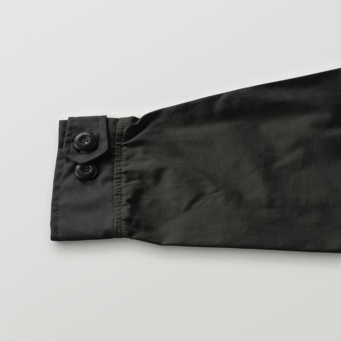 裾とウエストにはドローコードが付き、袖口はボタンで調整が可能です。